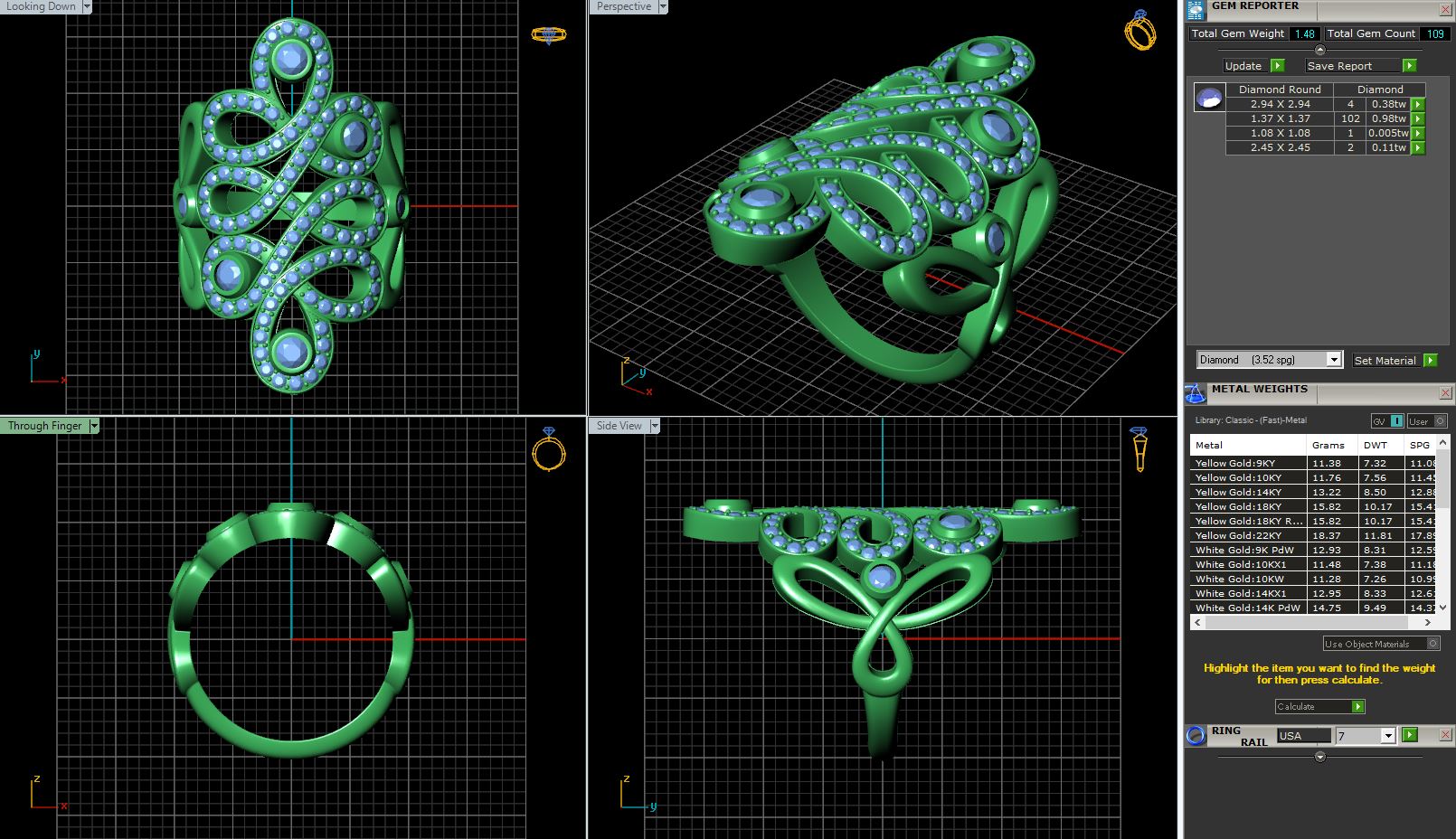 A multi-tier statement ring with swirling infinities and scattered bezel set diamonds