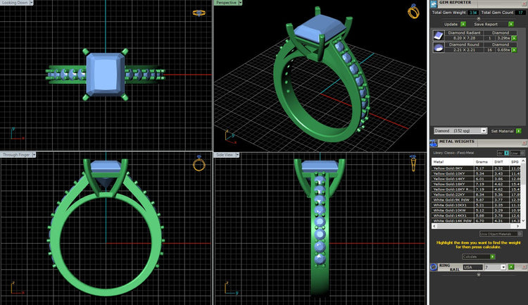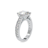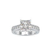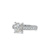 Cushion or princess cut diamond ring accented by bead set shoulders framed with edges