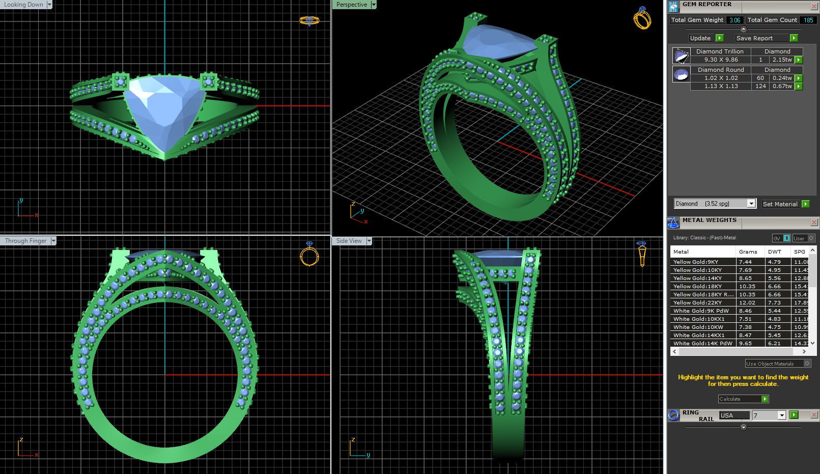This modern style featuresa centre diamondwith split diamond set shoulders.